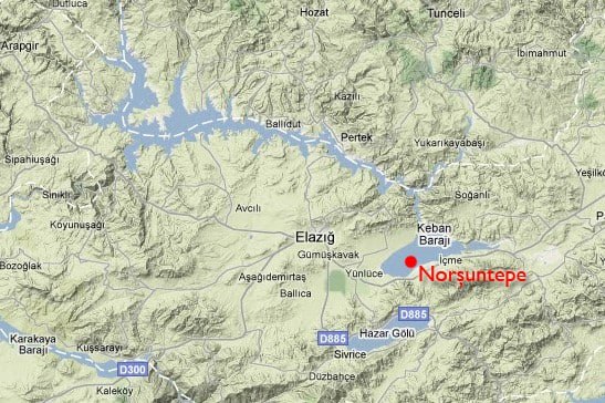 Норсун-Тепе расположен примерно в 25 километрах от турецкого города Элязыг, на равнине Алтынова у берегов реки Мурат — важнейшего притока Евфрата. Слово "тепе" в переводе с турецкого означает "холм", и это был действительно внушительный городской холм размером 800 на 600 метров — настоящий свидетель тысячелетий человеческой истории.
