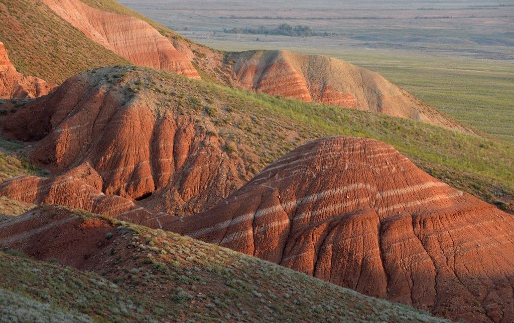 Неповторимый пейзаж. В европейской части России вы вряд ли найдёте такой резкий и впечатляющий контраст - безбрежная, плоская степь резко обрывается у подножия цветной горы, словно портал в другой мир.