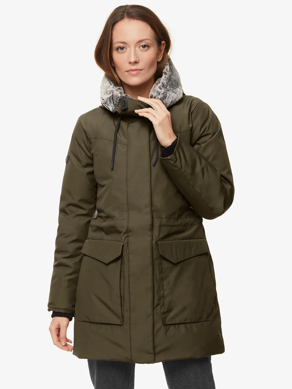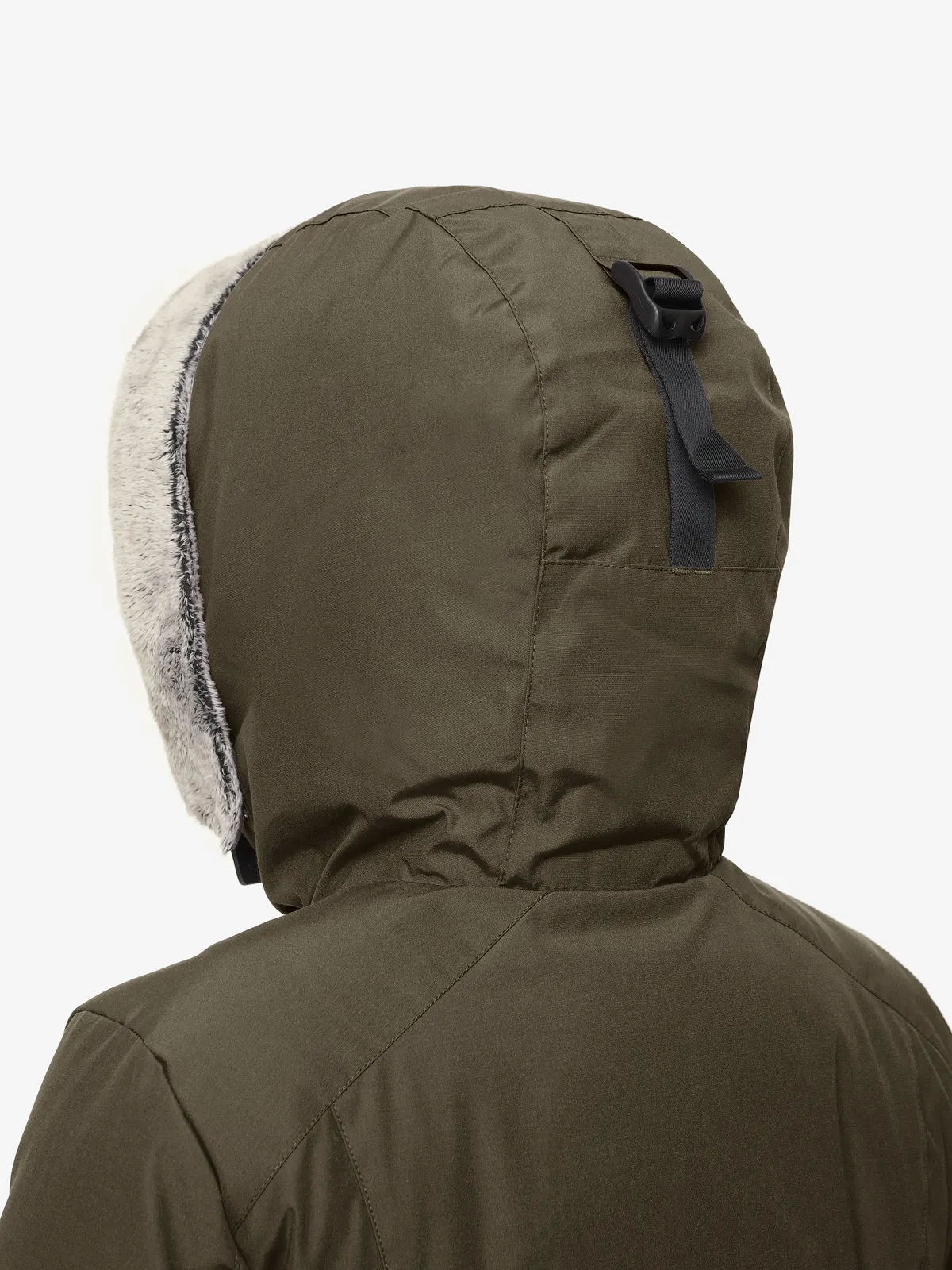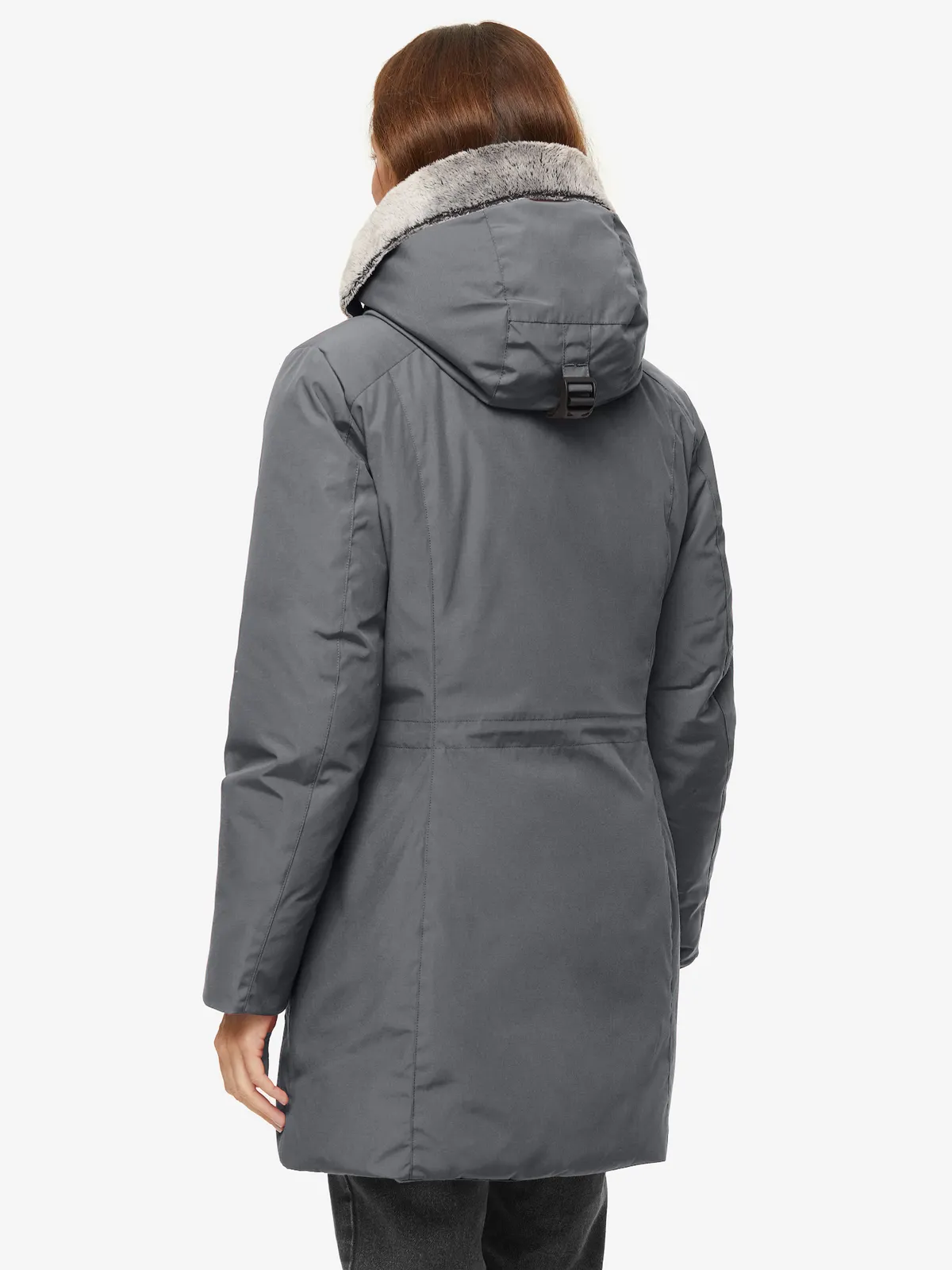 - теплый капюшон с меховым отворотом регулируется по объему