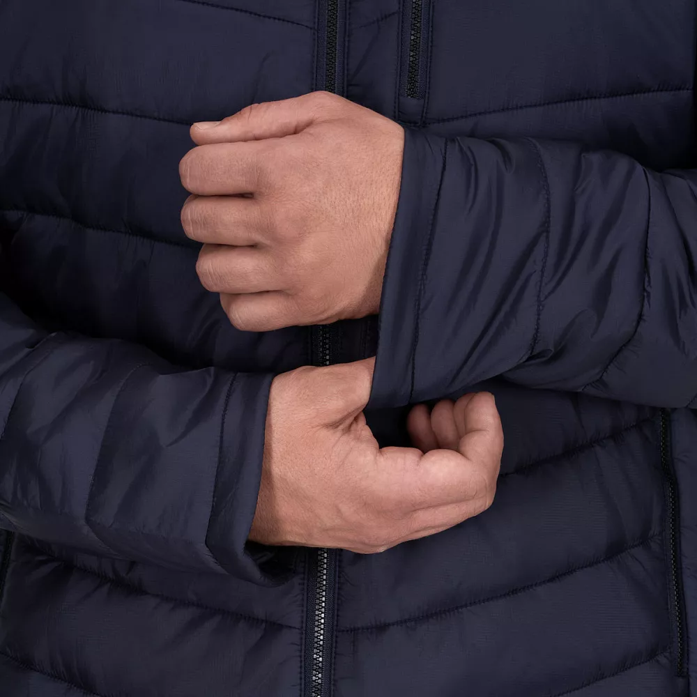 - Эластичная тесьма на рукавах и по низу куртки обеспечивает плотное прилегание и препятствует проникновению холода и ветра внутрь