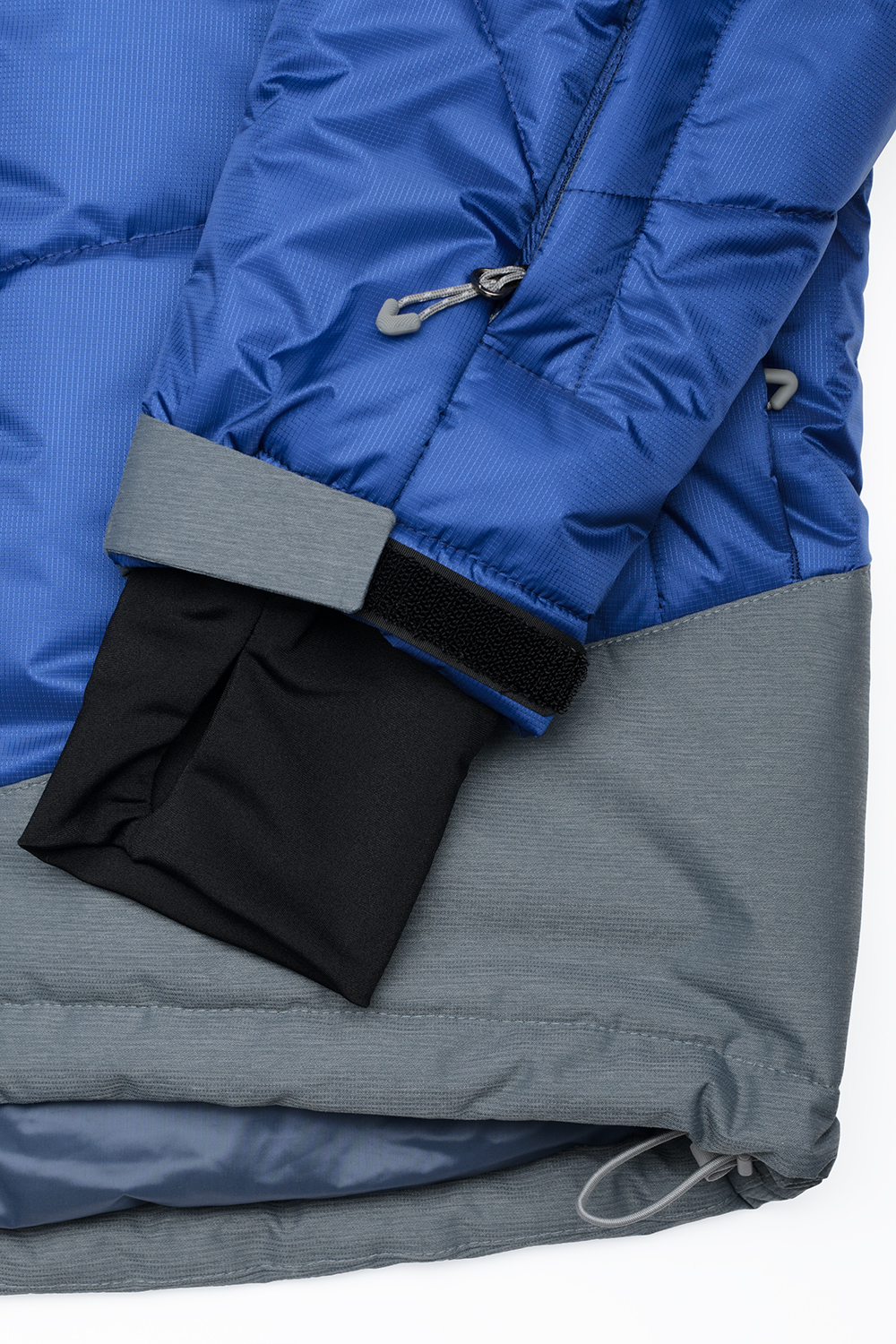 - Низ рукава регулируется патой и обработан эластичной манжетой с прорезью для большого пальца