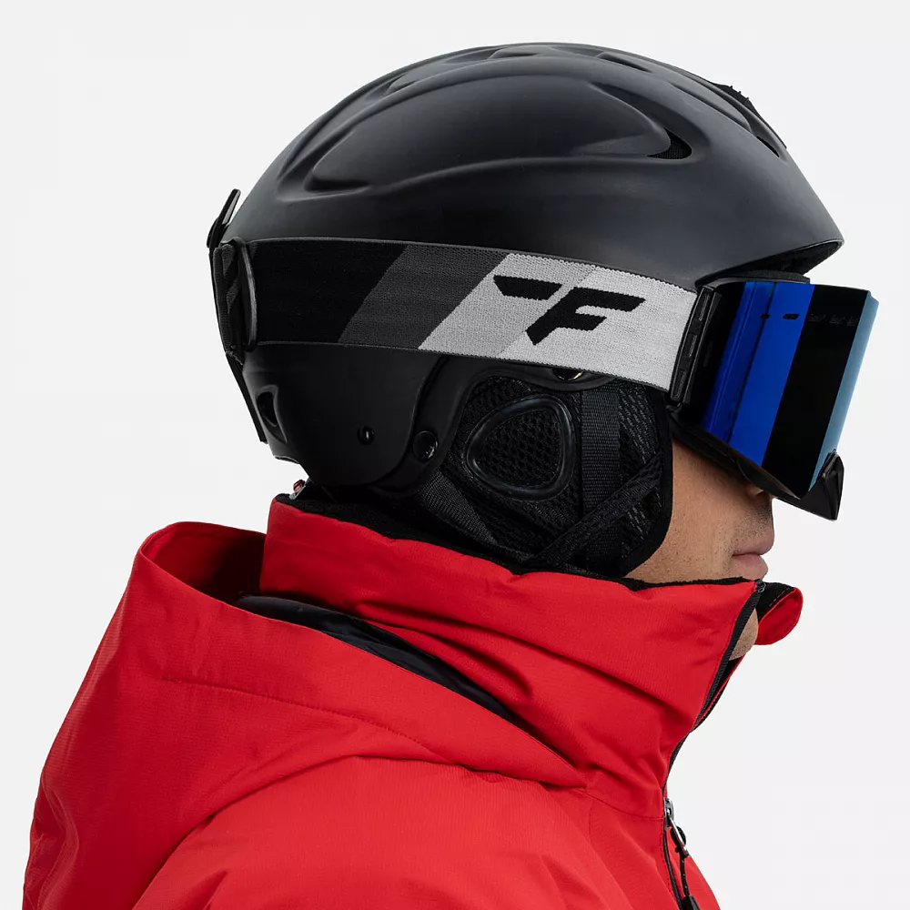 - Широкая регулируемая эластичная тесьма (45 мм) с силиконовыми вставками надёжно фиксирует маску на шлеме