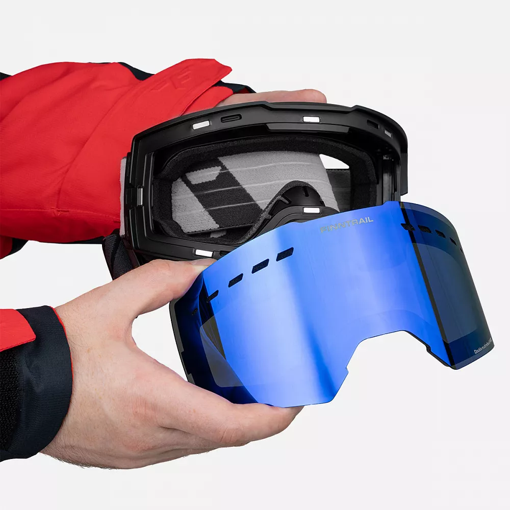 Маска для снегохода FINNTRAIL SKYLINE оснащена двойной линзой и обеспечивает широкий угол обзора, что делает её отличным выбором для поклонников активного катания. Благодаря магнитной системе линзы легко заменяются в зависимости от уровня освещения. Эргономичная вентиляция в сочетании с трехслойной структурой из мягкой полиуретановой пены и микрофлиса обеспечивает удобную посадку и надежное удаление влаги, создавая комфорт даже при длительном использовании.